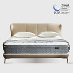 The hybrid mattress is composed of 8 layers of materials, arranged from top to bottom as follows: cooling sleep surface, egg air-circulation foam, high-density foam, non-woven fabric, high-resilient pocket springs, non-woven fabric, supportive foam, and an anti-slip bottom. Additionally, our hybrid mattress is CertiPUR-US®, OEKO-TEX®, and ISPA certified, ensuring high standards of safety and quality.